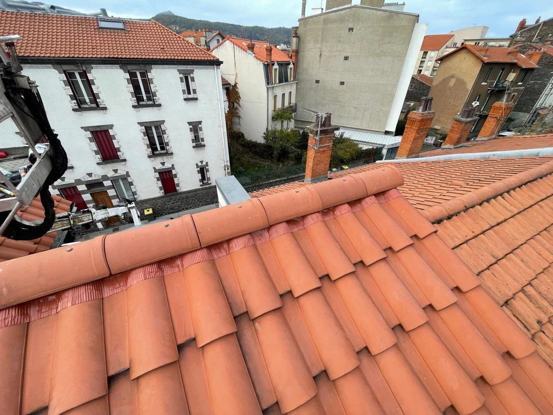 Un faîtage endommagé fragilise l’ensemble de la toiture. À Clermont-Ferrand, les variations de température et les intempéries accélèrent l’usure du mortier et des tuiles faîtières. Une rénovation de faîtage permet d’éviter les infiltrations d’eau et les pertes d’étanchéité.